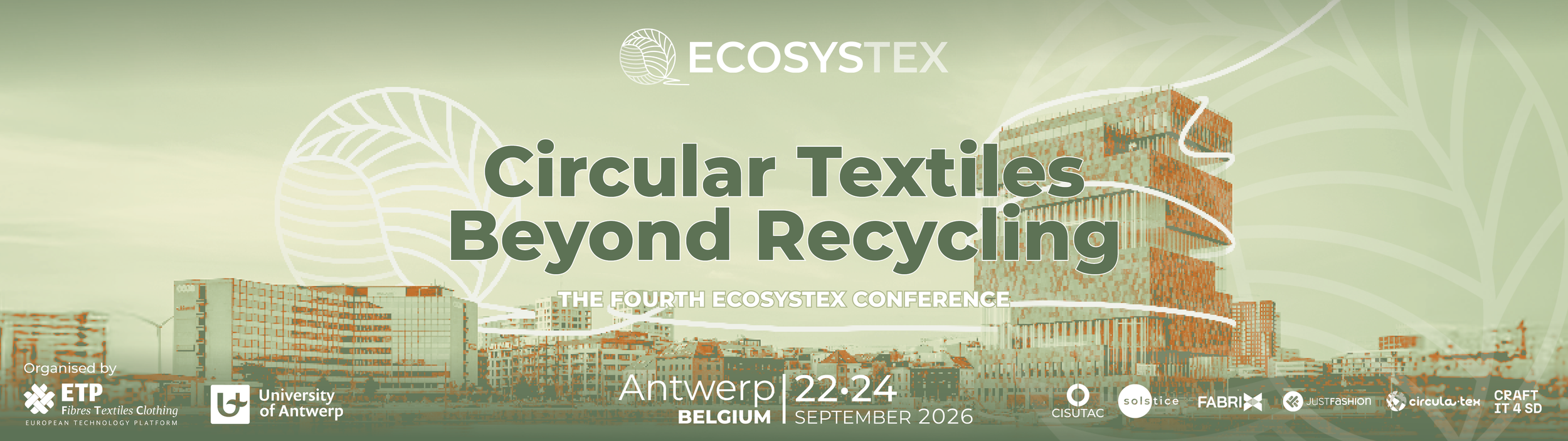 The fourth ECOSYSTEX Conference will take place as a physical event on 22-24 September in Antwerp, Belgium, in partnership with the University of Antwerp. This event will bring together experts, innovators, and industry leaders to explore circular textiles beyond recycling, and will host CISUTAC final event.